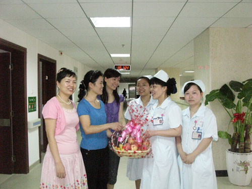 護(hù)士節(jié)慰問 發(fā)布時間:2009年5月12日 預(yù)覽:6656次 國際5.12護(hù)士節(jié)前夕,帶著醫(yī)院黨委的囑托,院工會、護(hù)理部等相關(guān)科室前往臨床各科看望、慰問了戰(zhàn)斗在臨床一線辛勤工作的護(hù)士姐妹們。慰問組一行向白衣天使們致以節(jié)日的問候,并給她們送去了節(jié)日的禮物。