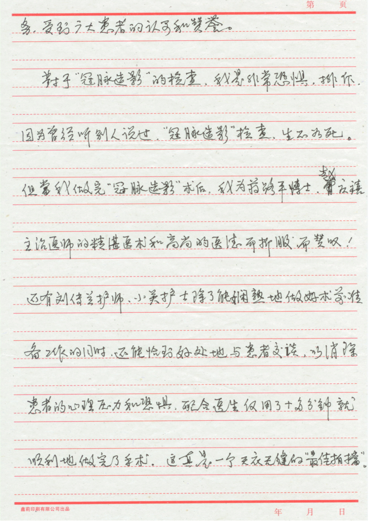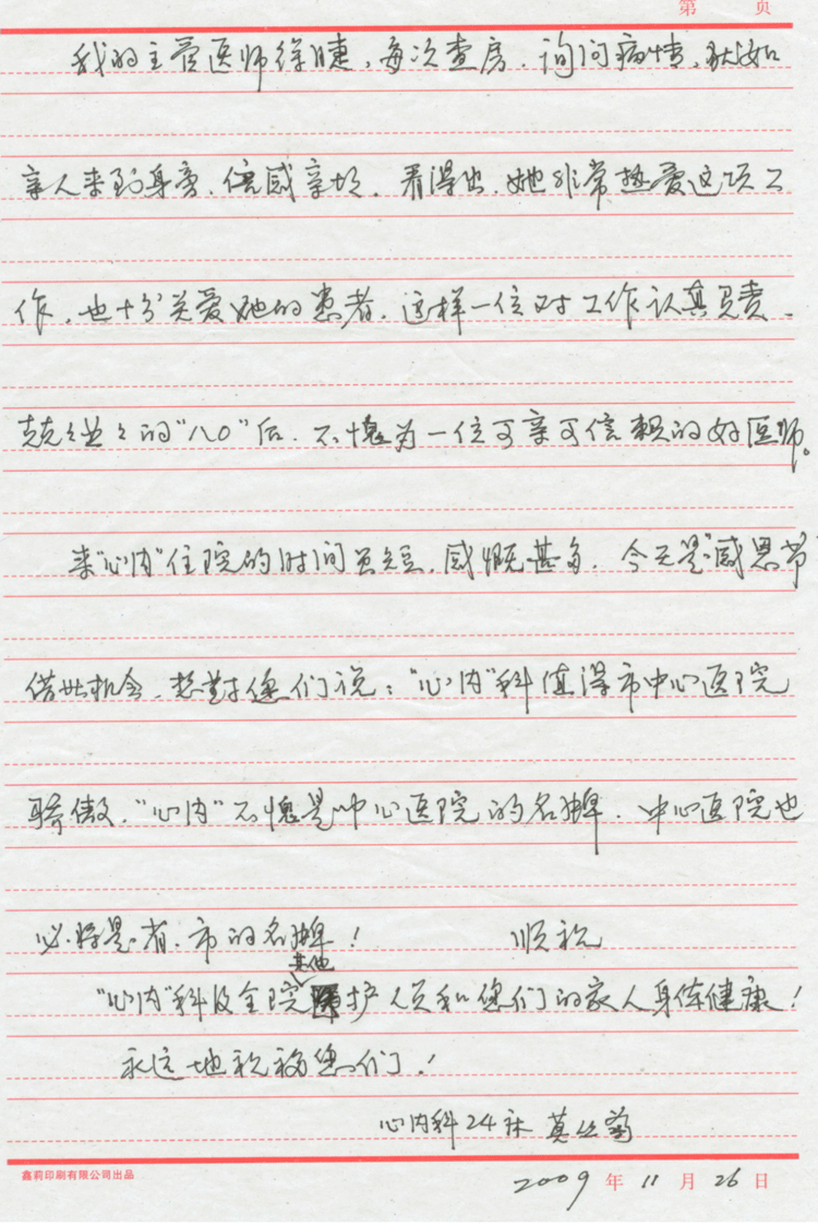 心內(nèi)科24床莫叢菊的一封感謝信