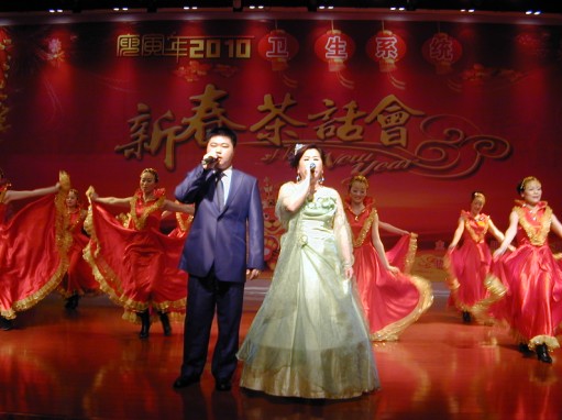 我院參加衛(wèi)生系統(tǒng)新春茶話會(huì) 發(fā)布時(shí)間:2010年2月10日 預(yù)覽:3827次 我院參加衛(wèi)生系統(tǒng)新春茶話會(huì) 2010年2月9日,為了感謝一年來(lái)上級(jí)領(lǐng)導(dǎo)對(duì)衛(wèi)生系統(tǒng)的關(guān)心和支持,展示醫(yī)務(wù)人員的風(fēng)采,活躍職工的文化生活,衡陽(yáng)市衛(wèi)生系統(tǒng)金珠云頂大酒樓舉行了隆重的迎新春茶話會(huì),大家歡聚一堂,以“健康仁愛(ài)和諧”為主題,我院工會(huì)組織14位職工演員表演了歌伴舞《我和我的祖國(guó)》,在這次茶話會(huì)上,我院榮獲市衛(wèi)生局授予的2009年度“領(lǐng)導(dǎo)班子先進(jìn)集體”光榮稱號(hào)。圖/文:張永明