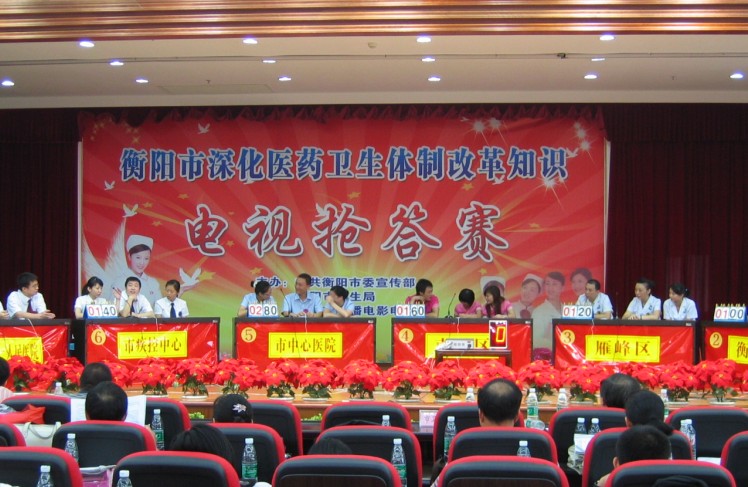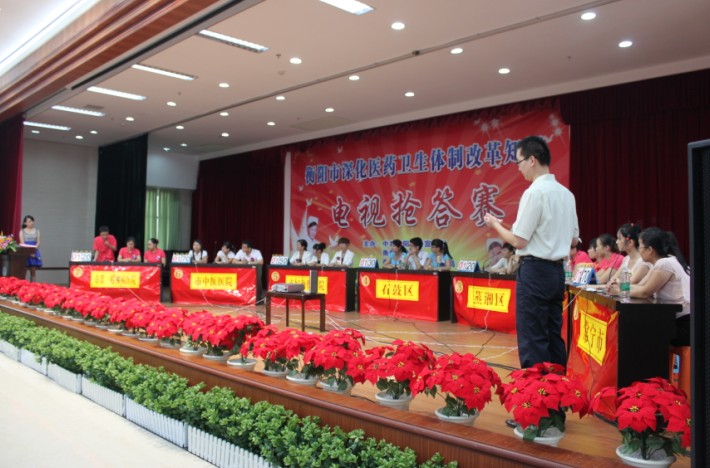 衡陽市醫(yī)改知識搶答賽在我院舉行(圖) 發(fā)布時(shí)間:2010年8月25日 預(yù)覽:3675次 衡陽市醫(yī)改知識搶答賽在我院舉行 2010年8月24日,衡陽市深化醫(yī)藥衛(wèi)生體制改革知識搶答賽在我院21樓多功能會議室舉行。該次活動(dòng)由市委宣傳部、市衛(wèi)生局、市廣播電影電視局、市總工會聯(lián)合舉辦,共有來自各縣市區(qū)的21支代表隊(duì)參加比賽。經(jīng)過一整天的激烈角逐,我院代表隊(duì)榮獲二等獎(jiǎng),喬鋒榮獲優(yōu)秀搶答獎(jiǎng)。(劉博)