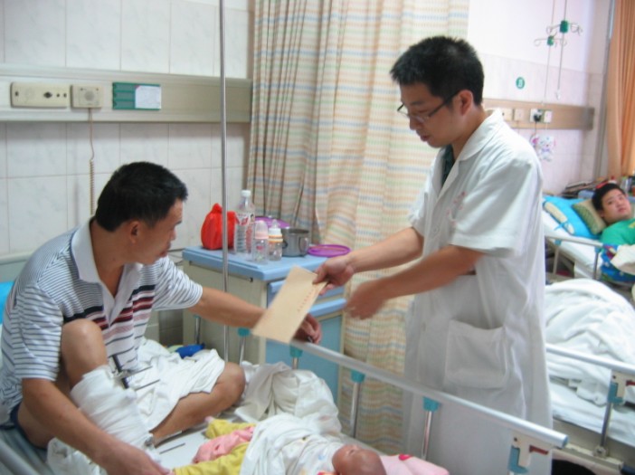 8月31日上午,骨科中心二區(qū)全體醫(yī)護(hù)人員在伍岳主任、潘燕護(hù)士長(zhǎng)的帶領(lǐng)下,為該病區(qū)困難病人12、13床進(jìn)行捐款,共捐贈(zèng)金額1150元。