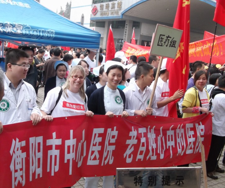 2011年9月24日上午,我院參加了2011年第五屆“愛心走長城”活動(dòng),并為活動(dòng)提供醫(yī)療保障服務(wù),這已經(jīng)是我院連續(xù)第三年參加該項(xiàng)愛心活動(dòng)。院團(tuán)委和兒科陪護(hù)福利院兒童從白沙洲出發(fā),途經(jīng)市八中、珠江橋、蒸陽南路,最終到達(dá)岳屏廣場(chǎng)。參與該次活動(dòng)的人數(shù)超過600人,在社會(huì)各界愛心人士的支持下,孤殘兒童將受到越來越多的關(guān)注和幫助。