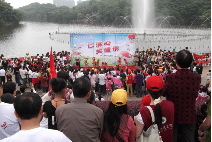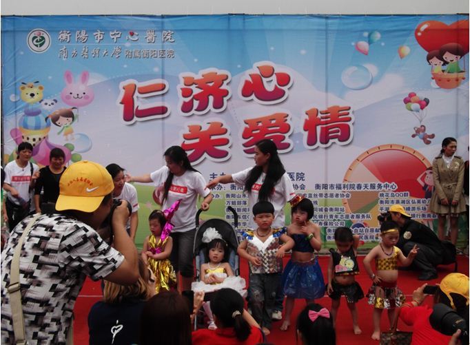 6月2日上午,由市中心醫(yī)院主辦,小紅人志愿者協(xié)會(huì)、春天服務(wù)中心承辦的“仁濟(jì)心、關(guān)愛(ài)情慶六一”活動(dòng)在華新開(kāi)發(fā)區(qū)的平湖公園舉行?;顒?dòng)得到了十幾家愛(ài)心團(tuán)體組織的響應(yīng),五百多位中外愛(ài)心人士陪伴福利院的近百位殘障兒童歡度六一兒童節(jié)。這已經(jīng)是我院團(tuán)委、工會(huì)、兒科連續(xù)第三年與福利院的小朋友歡度“仁濟(jì)心 關(guān)愛(ài)情六一”活動(dòng)。福利院小朋友為大家?guī)?lái)了精彩的表演,每個(gè)小朋友們都領(lǐng)到了精美的禮物和食品。在音樂(lè)噴泉的背景下,湖面上映起孩子們歡快的笑聲。