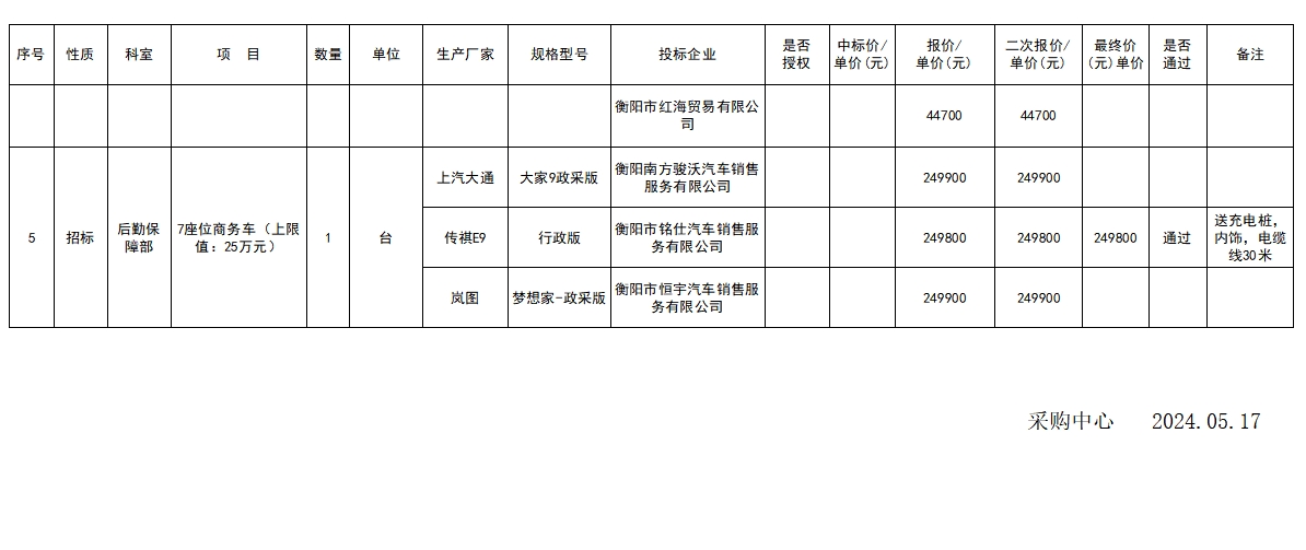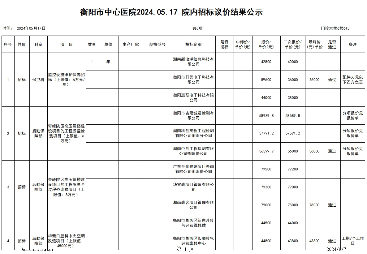 衡陽(yáng)市中心醫(yī)院2024.05.17院內(nèi)招標(biāo)議價(jià)結(jié)果公示 發(fā)布時(shí)間:2024年06月07日 15:41:36 預(yù)覽:5945次