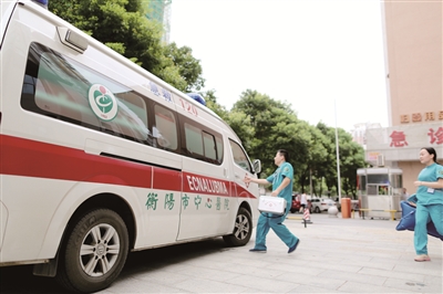 “也許是空診呢。”市120急救中心醫(yī)生班班長伍新橋調(diào)侃道,在繁忙的工作中他們偶爾也會被“騙”,導致出空診現(xiàn)象。下午4點左右,伍新橋與同事已經(jīng)出車多次,汗水已滲透了他的工作服。