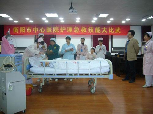 護理急救技術(shù)大比武 發(fā)布時間:2004年11月14日 預(yù)覽:7792次 《護士條例》的出臺要求我們護理人員緊急情況下為搶救垂?;颊呱鼞?yīng)當實施必要的緊急救護。為了讓全院護士更好服務(wù)于病人,強化急救技能,護理部于11月7日舉行了護理急救技術(shù)大比武,此次比武共設(shè)立2005年國際心肺復(fù)蘇術(shù)、簡易呼吸器的使用、電動吸痰法三項操作。由全院各護理單元選送24名選手參加“比武”經(jīng)過激烈競爭,共有7名進入決賽取得佳績。她們是:第一名血透室陳玉蘭,第二名神經(jīng)外科朱潔,第三名骨科二區(qū)厲璐,優(yōu)勝獎骨科一區(qū)周玲, 120急救中心江嵐,呼吸內(nèi)科 雷敏,急診科 周景衡 。護理部下階段工作中將以點帶面,提高全院護士急救技術(shù)水平。(來臨)