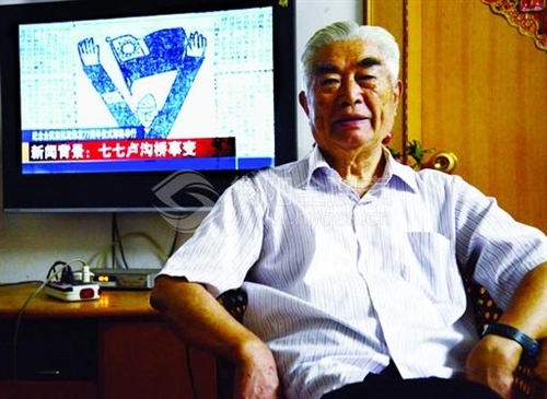 采訪張老時(shí),他正在收看《七七盧溝橋事變》專題片。