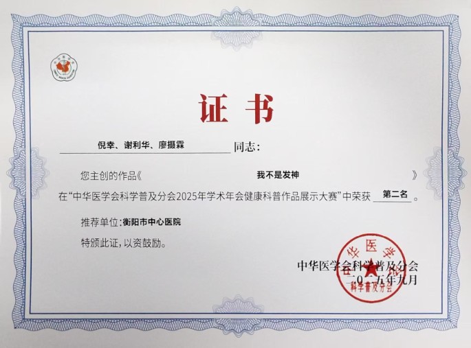 在本次大賽中衡陽市中心醫(yī)院一系列高質(zhì)量科普作品獲獎(jiǎng),體現(xiàn)了衡陽市中心醫(yī)院深入貫徹健康中國戰(zhàn)略,高度重視健康教育,廣泛開展健康科普工作的工作成效,充分展現(xiàn)了醫(yī)院醫(yī)學(xué)科普工作的蓬勃生機(jī)與創(chuàng)新活力。