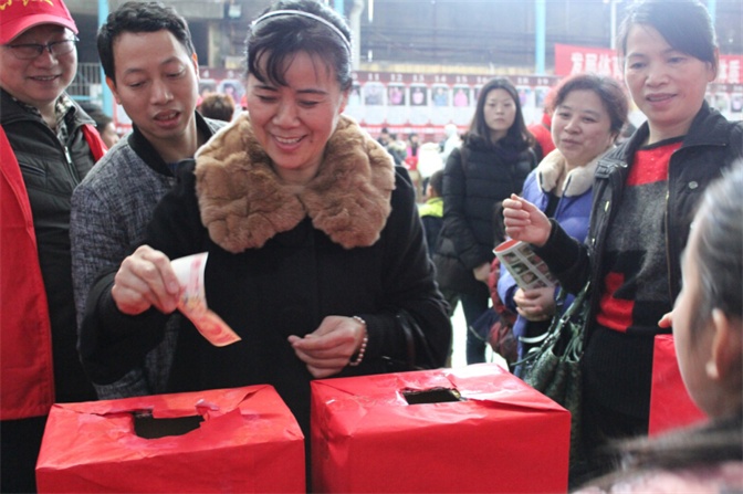 我院參加“心得樂”愛心捐款活動 發(fā)布時間:2015年2月16日 預覽:4019次 2015年2月14日,工會主席蔡春香帶領(lǐng)我院的愛心小分隊來到衡陽市岳屏廣場內(nèi)市體?;@球俱樂部的《心得樂》“窮娃盼過年”面對面捐款活動現(xiàn)場。帶著醫(yī)院黨委、行政的囑托、帶著1400名干部職工的濃濃愛心,將壹萬元愛心款捐給了來自衡陽七縣兩區(qū)的100位貧困孩子。同時,愛心小分隊隊員們也獻上了個人愛心捐款。我們的愛心,能讓孩子們過一個溫暖、開心的年;我們的善舉,也許會改變他們的一生;我們的捐款,同時也會讓自己的良心得到快樂! (王恩萍)