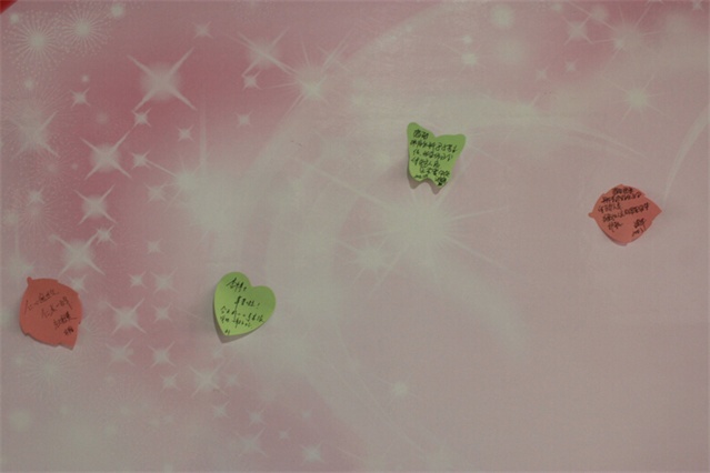 您只需到門診大廳便民服務(wù)中心索取筆和心愿卡,寫上文字,粘帖到“心愿墻”,就能實(shí)現(xiàn)“心靈告白”。