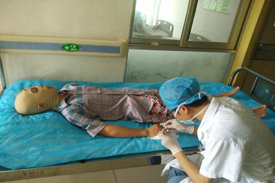 醫(yī)生正在為肖浩手部手術(shù)傷口拆線