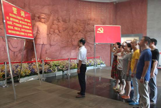 接著,大家相繼參觀了羅榮桓故居、羅榮桓紀(jì)念館。在羅榮桓紀(jì)念館,看著展出的一幅幅各個(gè)時(shí)期珍貴的歷史照片,重要的革命歷史文獻(xiàn),大家了解到了羅榮桓元帥光輝戰(zhàn)斗的一生,深刻地體會(huì)到了羅榮桓元帥崇高的愛(ài)國(guó)主義情懷和為了革命事業(yè)奉獻(xiàn)終生的偉大情操,受到了一次深刻的愛(ài)國(guó)主義教育。在羅元帥的雕像前,面對(duì)鮮紅的黨旗,大家共同舉起右手,又一次重溫入黨誓詞。