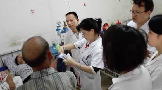 義診活動(dòng)一開(kāi)始,各位專(zhuān)家熱情地接待群眾,忙著給前來(lái)咨詢(xún)、看病的群眾測(cè)血壓、做檢查,耐心細(xì)致地解答患者的疑難問(wèn)題,并有針對(duì)性地進(jìn)行健康宣教、開(kāi)出健康處方。專(zhuān)家們緊張而有序地忙碌著,當(dāng)看到群眾們那一張張綻開(kāi)的笑臉,更激發(fā)了大家的工作熱情。盡管炎炎烈日卻絲毫沒(méi)有消減大家義診的熱情。同時(shí),覃春蓮主任、李春虹主任、朱曉宇主任等專(zhuān)家同鎮(zhèn)衛(wèi)生院醫(yī)生一起進(jìn)行了查房,對(duì)衛(wèi)生院專(zhuān)業(yè)技術(shù)人員進(jìn)行了相關(guān)指導(dǎo)。