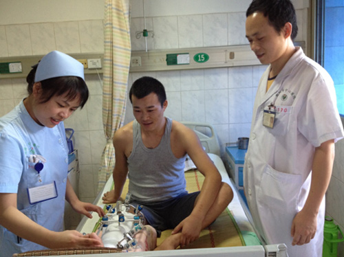 重拾信心,重展笑顏 發(fā)布時間:2015年9月15日 預覽:4300次 骨科一區(qū)是創(chuàng)造奇跡的地方,是書寫生命贊歌的地方。自開科以來,我們骨科中心譜寫了多少“動起來,站起來,笑起來”的生命奇跡。一個個病人躺著進來,走著出去,痛苦難忍進來,喜笑顏開回去,那一張張笑顏,一幅幅錦旗是對我們工作最好的肯定,也是對我們骨科一區(qū)最好的宣傳。 15床,歐云新,一個花樣年華的青年,被一場車禍導致右下肢毀損傷,右下肢大面積皮膚組織撕裂缺損,多處血管神經(jīng)損傷,奪去了燦爛的笑顏。入院后一系列的搶救輸血抗休克的治療,并急診行患肢開放性骨折清創(chuàng),骨折復位,外固定支架固定,部分創(chuàng)面修復,VSD負壓引流術(shù),術(shù)后予消腫,補液改善患肢而運,水電解質(zhì)平衡,抗破、預防感染等治療,于6月30號由ICU轉(zhuǎn)回病房。 治療的痛苦與康復的漫長,使得男孩情緒特別低落。再加上家境貧寒,高昂的醫(yī)療費用使他的情緒更加不穩(wěn)。他要么不愿意說話,要么與其家屬、醫(yī)護人員、同病房的病友拌嘴甚至惡語相向。那時,我們都很怕去他的床邊做治療,不敢提及他的腿,每天都提心吊膽害怕觸及他每一根敏感的神經(jīng)。護士長一邊要我們將心比心,一邊不厭其煩多次地做床邊心理疏導、宣教,指導其循序漸進地進行康復功能鍛煉。“人非草木,孰能無情”呢!終于,他由開始的自暴自棄轉(zhuǎn)變?yōu)榉e極地配合治療。時間一天天過去,經(jīng)過多科室的協(xié)作救護,他的病情也一天天好轉(zhuǎn),燦爛、陽光的笑容又回到了他年輕、帥氣的臉上。 那以后,病房里總能看見一位自信開朗的男孩拄著拐杖在做功能鍛煉?,F(xiàn)在他還天天和我們開玩笑,要我們管他叫歐大哥,甚至他還會以自己的康復經(jīng)歷來勸導其他病友,增強其他病友治愈的信心,指導陪護的工作。我們都親眼見證了他的康復過程,深知他那燦爛的笑容的來之不易,也衷心祝愿他能早日康復,以后的人生都一帆風順。 歐云新的故事只是我們骨科一區(qū)許許多多事例中的其中一例,他的笑容卻代表了許許多多病人康復后的心聲。盡管“天有不測風云,人有旦夕禍?!?,但我們相信有了大家的守望相護,前方一定是陽光燦爛,彩虹相隨。 (鄢玲俐)