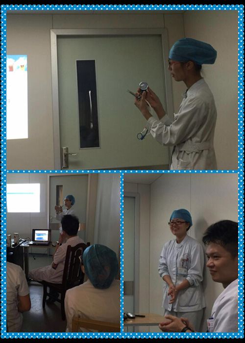 接下來的PPT演講中,每位圈員分別演示了各自負(fù)責(zé)的相關(guān)有效措施以及后期預(yù)想,展示了已經(jīng)使用在臨床應(yīng)用當(dāng)中的各項(xiàng)措施和自主發(fā)明創(chuàng)造的幾項(xiàng)輔助器械儀器,充分體現(xiàn)了品管圈成立中各位圈員的自主自發(fā)精神,集思廣益,思維碰撞,儼然一場特別的頭腦風(fēng)暴。