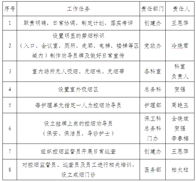 (一)在醫(yī)院控?zé)燁I(lǐng)導(dǎo)小組的領(lǐng)導(dǎo)下,各科室負(fù)責(zé)人及護(hù)士長為控?zé)熦?zé)任人及監(jiān)督員,要求帶領(lǐng)科室人員認(rèn)真學(xué)習(xí)和執(zhí)行有關(guān)控?zé)熞?guī)定和制度,做好日常督查工作,切實(shí)做到責(zé)任明確,管控到位。