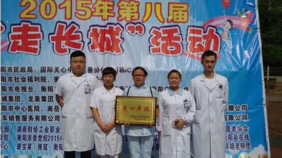 10月17日,一個(gè)特殊的日子,由國際關(guān)心中國慈善協(xié)會(huì)(ICC)與衡陽市社會(huì)福利院共同舉辦的“為愛行走”——ICC衡陽2015年第八屆“走長城”活動(dòng)在千噸級碼頭廣場舉行。市中心醫(yī)院醫(yī)療志愿服務(wù)隊(duì)與衡陽各公益組織代表、大學(xué)生志愿者、普通群眾及外籍友人近500人參加了本次活動(dòng),該院被國際關(guān)心慈善基金會(huì)授予“愛心單位”稱號。
