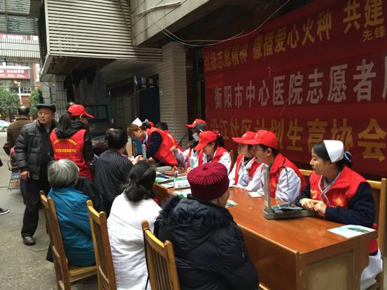 國際志愿者日 我們在行動 發(fā)布時間:2015年12月7日 預(yù)覽:25943次 2015年12月4日上午9點,由市委宣傳部、團市委、市文明辦舉辦的衡陽市紀念第30個國際志愿者日暨志愿服務(wù)先進典型表彰活動在市體育中心隆重舉行。我院由骨科、普外科、神經(jīng)內(nèi)科、心內(nèi)科、呼吸內(nèi)科以及護理部的25名醫(yī)務(wù)人員組成的志愿者服務(wù)隊參加了此次活動。 參加完表彰活動后,志愿服務(wù)隊員們又馬不停蹄地趕往雁峰區(qū)沿江社區(qū)開展義診活動。義診持續(xù)了一個多小時,志愿者們?yōu)榍皝韱栐\的市民們提供健康咨詢、檢查身體、測量血壓等服務(wù)。據(jù)統(tǒng)計,此次活動共義診80余人,發(fā)放健康宣傳手冊100多份?;顒咏Y(jié)束后,我院志愿者們紛紛表示要更加積極地投身志愿服務(wù),開展更多內(nèi)容豐富的志愿活動。 (團委)