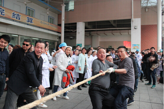 凝心聚力 共創(chuàng)未來 發(fā)布時間:2016年3月7日 預(yù)覽:3595次 ——我院舉行慶“三•八”拔河比賽 3月3日下午,院工會為紀(jì)念“三•八”國際勞動婦女節(jié),舉行了一場振奮人心的拔河比賽,來自機關(guān)后勤、門診醫(yī)技、內(nèi)科、外科及華新分院5支代表隊的120余名運動員代表參加了比賽。 伴隨著一聲哨響,比賽開始了,運動員們都使出了全身的力氣,比賽場上各個精神飽滿、斗志昂揚、奮力拼博,展示出勇爭一流、奮發(fā)向上的精神風(fēng)貌。整場比賽氣氛熱烈,整個賽程熱情高漲,隊員間的合作充分體現(xiàn)了團隊合作精神,以及頑強拼搏的體育精神,現(xiàn)場觀戰(zhàn)的啦啦隊更是為運動員們吶喊助威,現(xiàn)場氣氛十分熱烈。通過緊張激烈的角逐華新分院女子代表隊和門診醫(yī)技男子代表隊榮獲本次比賽的第一名。 (文:王恩萍/圖:王穎超)