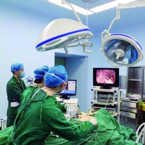 尹軍帶領(lǐng)團隊正在做“甲狀腺美容手術(shù)”