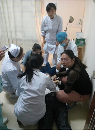 門診合力成功搶救突發(fā)心臟驟停病人 發(fā)布時(shí)間:2016年5月3日 預(yù)覽:2709次 2016年5月3日上午,一老年男性患者因“反復(fù)間斷性便血”就診門診肛腸科,既往有高血壓、肝硬化、冠心病、中度貧血病史。??漆t(yī)師李祥樂了解患者病史后為其做了體格檢查,并根據(jù)病情告知病人需立即住院治療。病人在侯診椅上突發(fā)心臟驟停,面色紫紺,意識(shí)喪失,全身冷汗。門辦負(fù)責(zé)人李春梅巡查時(shí)發(fā)現(xiàn)此情況后立即大聲呼救,判斷病人心臟驟停立即叩擊心臟與李醫(yī)師將患者平臥于地板上,積極為病人做心臟按壓,吸氧、建立靜脈通道,約5分鐘后才使病人恢復(fù)心跳。門導(dǎo)何燕等醫(yī)務(wù)人員則分頭通知急診科護(hù)士長閆隋和急救電梯員、擔(dān)架工前來轉(zhuǎn)診,萬劍主任、李文華醫(yī)師、門診王敏、陳慧等聞?dòng)嵑笠蚕嗬^趕來幫助抬病人共同護(hù)送病人到重癥監(jiān)護(hù)病房作進(jìn)一步搶救治療。 (張永明)