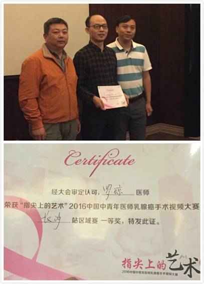 乳甲外科傳來喜訊 發(fā)布時間:2016年5月9日 預覽:2371次 我院乳甲外科羅瓊醫(yī)生在近日舉辦的“指尖上的藝術”2016中國中青年醫(yī)師乳腺癌手術視頻大賽——湖南省長沙站區(qū)域賽上榮獲一等獎。本次大賽參賽醫(yī)院涵蓋了湘雅附一、湘雅附二、湖南省腫瘤醫(yī)院、郴州市第一人民院等省內多家知名醫(yī)院。 (李小敏)