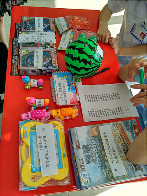 兒科醫(yī)護(hù)人員精心準(zhǔn)備的舞蹈節(jié)目《大王叫我來巡山》首先拉開了活動(dòng)帷幕,活潑調(diào)皮的舞蹈給平時(shí)嚴(yán)肅認(rèn)真的醫(yī)生哥哥,護(hù)士姐姐增添了更多的親和力,吸引了很多的小朋友加入節(jié)目中。接下來是分享老虎蛋糕。被邀請切蛋糕的小朋友羅小帥,在張黎黎主任耐心的鼓勵(lì)和幫助下,切下了第一刀,所有的小朋友翹首以待。已經(jīng)吃到蛋糕的小朋友迫不及待,吃的滿臉都是奶油;還沒吃到蛋糕的小朋友急得直哭,場面甚是熱鬧。最后是猜謎語贏禮物活動(dòng)。50多份禮物瞬間吸引了小朋友們的眼球。禮物品種繁多,琳瑯滿目:有小書本,積木,畫板,機(jī)器人,球,小動(dòng)物玩偶等等。家長們抱著小朋友們積極參與猜謎語,有的小朋友拿到了彩色足球,想一想又去換了變形金剛?;顒?dòng)伴隨著小朋友的歡聲笑語畫上了圓滿的句號(hào)。