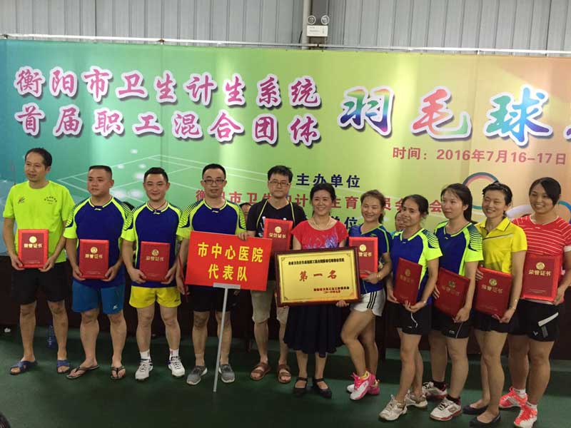 我院獲得市衛(wèi)計(jì)系統(tǒng)羽毛球賽團(tuán)體第一名 發(fā)布時(shí)間:2016年7月19日 預(yù)覽:2383次 2016年7月16日至17日,衡陽(yáng)市衛(wèi)生計(jì)生系統(tǒng)職工混合團(tuán)體羽毛球賽在衡陽(yáng)市健友羽毛球館隆重舉行,來(lái)自七縣五區(qū)的全市衛(wèi)生計(jì)生系統(tǒng)21支代表隊(duì)200余名運(yùn)動(dòng)員參加了混合團(tuán)體、男子單打的比賽。 為確保我院代表隊(duì)在此次比賽中取得好成績(jī),院黨委、工會(huì)對(duì)本次比賽組織工作非常重視,黨委書(shū)記申惠龍、副院長(zhǎng)劉小平積極參加隊(duì)員訓(xùn)練,工會(huì)主席蔡春香積極組隊(duì)并為隊(duì)員鼓勁。全體參賽隊(duì)員利用周日、晚上及休息時(shí)間參加訓(xùn)練,他們不怕苦、不怕累,刻苦訓(xùn)練;在比賽中,英勇頑強(qiáng)、敢于拼搏、團(tuán)結(jié)協(xié)作,參賽隊(duì)員過(guò)硬的體能、高超的球藝,展現(xiàn)了衡陽(yáng)市中心醫(yī)院良好的精神風(fēng)貌。必勝的信念激發(fā)出昂揚(yáng)的斗志,辛勤的汗水澆灌出驕人的成績(jī)。經(jīng)過(guò)二天的激烈角逐,我院代表隊(duì)獲得了衡陽(yáng)市衛(wèi)生計(jì)生系統(tǒng)職工混合團(tuán)體羽毛球賽團(tuán)體第一名,醫(yī)保辦劉偉榮獲男子單打第三名的好成績(jī)。