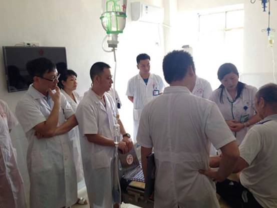 與基層手牽手 與百姓心連心 發(fā)布時(shí)間:2016年9月28日 預(yù)覽:2459次 金秋九月,秋高氣爽。值第17個(gè)世界心臟病日到來(lái)之際,為了喚起公眾對(duì)心腦血管疾病的重視,9月26日,華新內(nèi)一科在徐睫主任的帶領(lǐng)下一大早便來(lái)到了衡南縣第五人民醫(yī)院開(kāi)展義診活動(dòng)。 聽(tīng)說(shuō)有市里大醫(yī)院的專家來(lái)義診,前來(lái)看病、咨詢的老百姓絡(luò)繹不絕,場(chǎng)面熱鬧非凡。徐主任、謝醫(yī)生、全醫(yī)生非常耐心細(xì)致地一一給予解答、看病、開(kāi)方。徐主任還到住院部給病人查房,抽取典型病例給該院醫(yī)生進(jìn)行了一次教學(xué)查房,并利用PPT給大家授課,詳細(xì)講解了冠心病的診斷、鑒別診斷、治療、用藥及最新進(jìn)展,并一一解答了他們提出的一些問(wèn)題。該院醫(yī)生紛紛表示受益匪淺,并對(duì)徐睫主任的專業(yè)素養(yǎng)表示敬佩,義診活動(dòng)取得了圓滿成功。 此次活動(dòng)加強(qiáng)了跟鄉(xiāng)鎮(zhèn)醫(yī)院的交流聯(lián)絡(luò),做到了“傳幫帶教”,也讓當(dāng)?shù)乩习傩照嬲w會(huì)到衡陽(yáng)市中心醫(yī)院是“老百姓心中的醫(yī)院”。華新內(nèi)一科、內(nèi)三科自合科以來(lái),在徐睫主任和劉平主任的帶領(lǐng)下,全科人員齊心協(xié)力,毫不松懈,嚴(yán)抓醫(yī)療護(hù)理質(zhì)量,努力把科室做得更大、更專、更強(qiáng)!我們相信,我們的明天會(huì)更好! (李桂華)