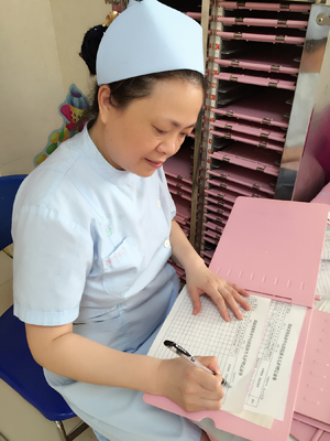 2012年8月醫(yī)院產(chǎn)科搬遷到華新分院,何老師積極參與產(chǎn)科門診孕婦學(xué)校的建立,編制??菩麄鳈?、宣傳冊(cè),開設(shè)母乳喂養(yǎng)咨詢電話;同時(shí),孕婦營(yíng)養(yǎng)門診、新生兒聽力篩查、新生兒預(yù)防接種、新生兒疾病篩查、辦理新生兒出生證明等工作都由何少芳老師一人承擔(dān)。她經(jīng)手的工作不僅受到了產(chǎn)婦的熱烈歡迎,也得到了同行和社會(huì)各界的高度評(píng)價(jià),孕產(chǎn)婦及家屬的滿意度持續(xù)提高。