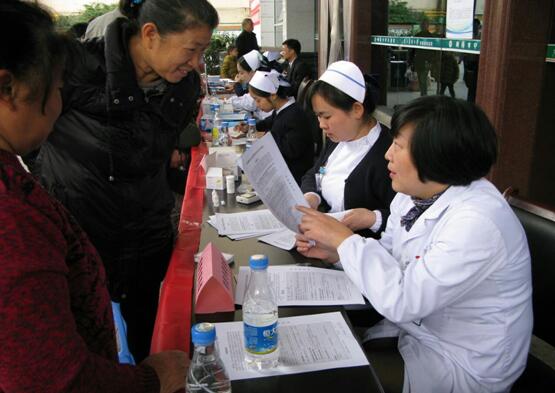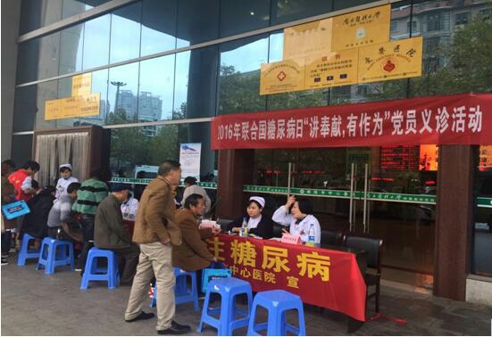 內(nèi)科支部開展“講奉獻、有作為”義診活動 發(fā)布時間:2016年11月15日 預(yù)覽:11037次 2016年11月12日上午門診大廳前,內(nèi)科支部組織部分黨員開展“兩學(xué)一做”第四專題“講奉獻、有作為”大型糖尿病日義診活動。內(nèi)分泌主任劉愛梅、腫瘤二區(qū)護士長鐘亞方、急診科護士程聰?shù)葍?nèi)科黨員對前來參加義診的市民進行糖尿病篩查活動,免費為前來咨詢的市民做糖尿病風險評估并建立健康檔案,測量血糖、血壓、身高、體重、腹圍、糖化血紅蛋白,早期篩查出糖尿病高危人群,指導(dǎo)糖尿病人合理就醫(yī)和規(guī)范治療,從而提高糖尿病的診斷率和治療達標率,延緩并發(fā)癥的發(fā)生,降低致殘率和病史率。 本次活動共篩查112人次,發(fā)放糖尿病資料300份,取得了良好的社會效應(yīng)。 (來臨)