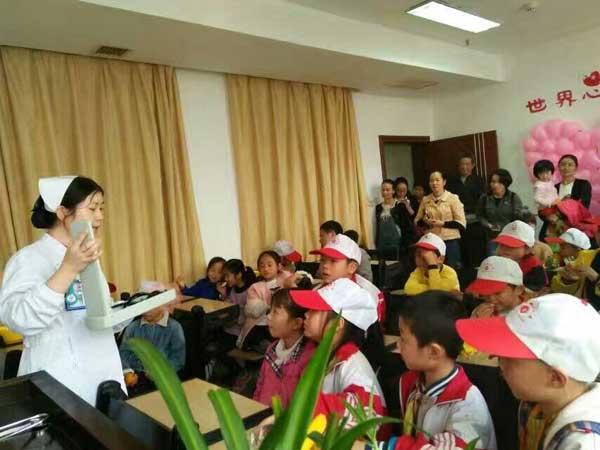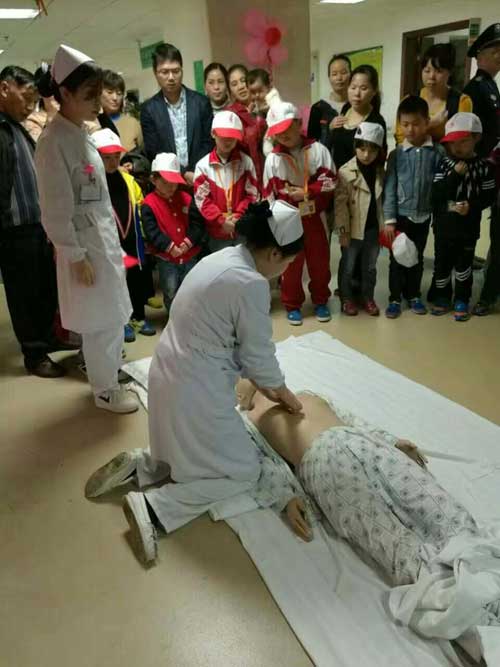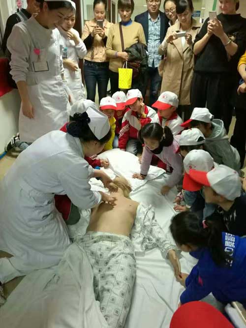 抓住心梗突發(fā)救治“黃金120分鐘” 發(fā)布時間:2016年11月25日 預(yù)覽:2794次 中國心梗日,晚報小記者走進衡陽市中心醫(yī)院心血管內(nèi)科感受生命接力 “面對生命,我們必須爭分奪秒?!?9日下午,在第三個中國心梗日來臨之際,為讓心梗突發(fā)急救知識普及到千家萬戶,來自全市各校的25名晚報小記者們來到衡陽市中心醫(yī)院心血管內(nèi)科,參加該院組織的“中國心梗日——體驗心梗急救”公益活動。該院心血管內(nèi)科醫(yī)護人員為小記者們及其家長講解急救方面的相關(guān)知識,并進行心肺復(fù)蘇模擬技能體驗。 在醫(yī)護人員帶領(lǐng)下,小記者們認真聆聽了該院心內(nèi)科柏太柱、朱曉宇等專家關(guān)于心梗突發(fā)及急救等健康知識講座,專家們通俗易懂的講解,讓小記者們對心梗知識有了更深入的了解,意識到了心臟對生命延續(xù)的重要性。 隨后,心血管內(nèi)科倪淑英、劉蕓、周景衡、丁文婕等護理專家現(xiàn)場進行了心梗突發(fā)治救黃金120分鐘的“心肺復(fù)蘇”模擬演示。她們分步驟講解,詳細展示了在突發(fā)狀況下爭分奪秒地搶救生命的技巧,并邀請小記者進行互動,“手把手”地指導(dǎo)正確的按壓部位,操作方法以及按壓力度。通過醫(yī)護人員手把手地示范,點對點地操作,小記者們都已經(jīng)很清楚地了解了急救步驟、應(yīng)急措施,能做到一邊呼救,一邊熟練地清除患者呼吸道異物,打開氣道,施行人工呼吸及完成胸外心臟按壓,儼然成為一個個小急救員。 市中心醫(yī)院心血管內(nèi)科主任柏太柱主任醫(yī)師在接受采訪時稱:“我們非常歡迎衡陽晚報小記者們到我們心內(nèi)科進行學(xué)習(xí)采訪。他們平時都是班級甚至學(xué)校里的佼佼者,他們多才多藝、對知識的向往,也激發(fā)了我們作為一名基層醫(yī)務(wù)工作者更好地為群眾的健康生活保駕護航的信心和決心。” 活動結(jié)束,隨行家長紛紛表示,很感謝市中心醫(yī)院精心準備的這次校外課堂,不僅讓孩子們通過試聽、互動等形式認識到了生命的寶貴,自己在這個過程中對對心梗家庭急救知識也有了更更深入的了解,提升了自救、家庭急救與預(yù)防風(fēng)險的意識。