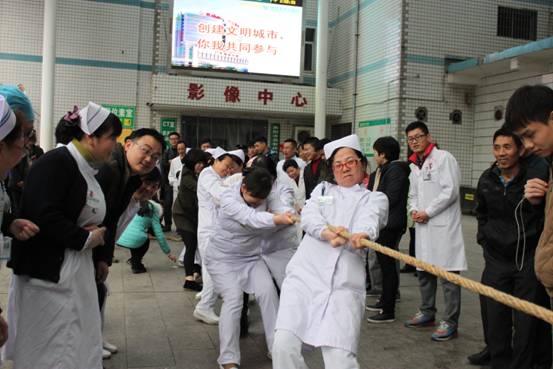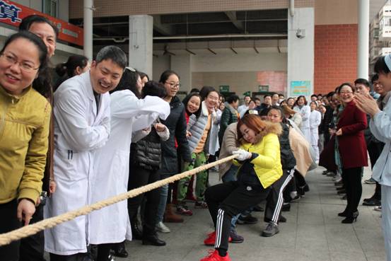 我院舉辦慶“三•八”拔河比賽 發(fā)布時間:2017年3月6日 預(yù)覽:2430次 為紀念“三•八”國際勞動婦女節(jié),3月3日下午,院工會舉辦了慶“三•八”拔河比賽,來自門診醫(yī)技、內(nèi)科、外科、華新分院及機關(guān)分工會5支代表隊的60余名運動員代表參加了比賽。 隨著一聲哨響,在工會主席蔡春香的帶領(lǐng)下,拔河比賽正式拉開了序幕。比賽場上各個代表隊的運動員情緒飽滿、斗志昂揚,他們在比賽場上揮灑汗水、奮力拼博,展示出勇爭一流、奮發(fā)向上的精神風(fēng)貌。整場比賽氣氛熱烈,整個賽程熱情高漲,隊員間的合作充分體現(xiàn)了團隊合作精神,以及頑強拼搏的體育精神,現(xiàn)場觀戰(zhàn)的啦啦隊更是為運動員們不斷地吶喊助威,整個賽場呈現(xiàn)出一派歡樂景象。通過緊張激烈的角逐,外科分工會的女隊和男隊榮獲本次比賽的第一名。 (王恩萍)