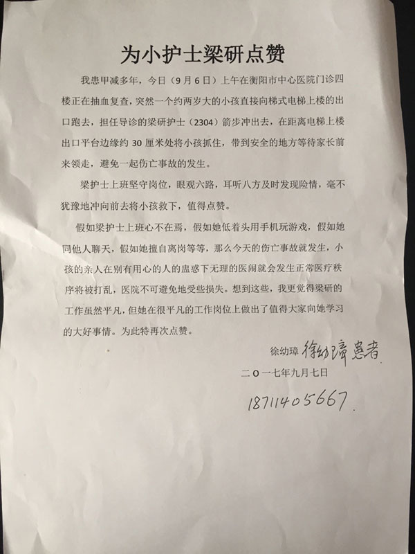 衡陽市中心醫(yī)院華新分院2017年9月30日錦旗
