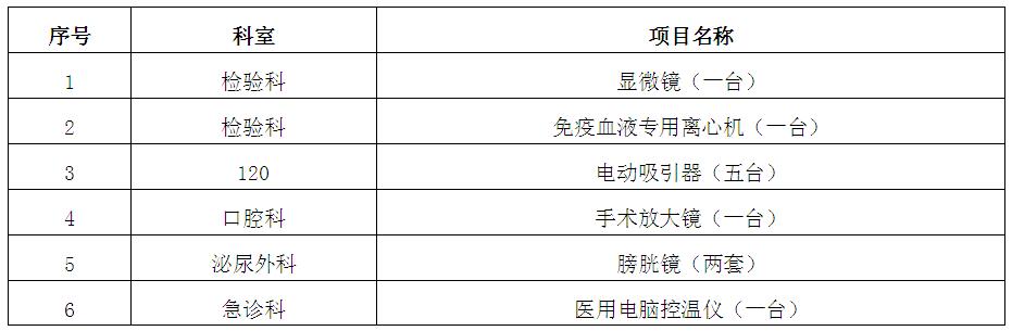 因醫(yī)院發(fā)展的需要,我院我院擬于近期對一批醫(yī)療設(shè)備進(jìn)行院內(nèi)招標(biāo)采購,歡迎具備條件的公司報(bào)名參加。
