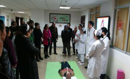 隨后,倪淑英護(hù)士長、許萍護(hù)士長、唐學(xué)文、劉一笑醫(yī)生針對冠心病發(fā)病急的特點(diǎn),進(jìn)行了藥物、休息、運(yùn)動等方面的知識宣教,耐心的回答了病友們咨詢的許多問題;劉蕓、周景衡也在現(xiàn)場進(jìn)行了心梗突發(fā)救治黃金120分鐘的“心肺復(fù)蘇”模擬演示。她們分步驟講解,詳細(xì)展示了在突發(fā)狀況下爭分奪秒的搶救生命的技巧,并邀請病友進(jìn)行互動,手把手的指導(dǎo)正確的按壓部位、力度及操作方法,使大家深刻的明白了急性心梗的救治是一場和死神的賽跑,時間越短,預(yù)后越佳。
