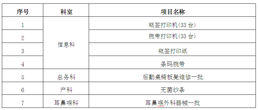因醫(yī)院發(fā)展的需要,我院擬于近期采購打印機一批及配套打印紙若干,桌椅板凳維修一批,歡迎具備條件的公司報名參加。