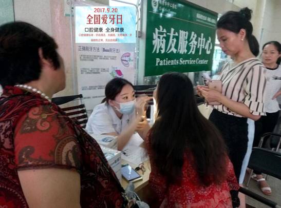 積極開(kāi)展全國(guó)第29個(gè)“愛(ài)牙日”活動(dòng) 發(fā)布時(shí)間:2017年9月25日 預(yù)覽:2099次 衡陽(yáng)市中心醫(yī)院口腔科積極開(kāi)展全國(guó)第29個(gè)“愛(ài)牙日”活動(dòng) 通訊員張永明報(bào)道:為了在公眾中進(jìn)行牙病防治知識(shí)的普及教育,增強(qiáng)口腔健康觀念和自我口腔保健的意識(shí),幫助公眾建立口腔保健的習(xí)慣,從而提高全市的口腔健康水平。9月20日,衡陽(yáng)市中心醫(yī)院口腔科在門(mén)診大廳開(kāi)展了第29個(gè)全國(guó)“愛(ài)牙日”活動(dòng)。今年活動(dòng)主題是“口腔健康 全身健康”。 “愛(ài)牙日”活動(dòng)通過(guò)設(shè)置宣傳板,散發(fā)宣傳單、宣傳手冊(cè),設(shè)立為民義診咨詢(xún)臺(tái)、答題有獎(jiǎng)等多種方式向廣大群眾宣傳相關(guān)知識(shí)。專(zhuān)家用口腔模型深入淺出講解愛(ài)牙護(hù)牙的相關(guān)知識(shí),并倡導(dǎo)大家關(guān)愛(ài)牙齒,從小做起,持之以恒,指導(dǎo)正確的刷牙方法??谇唤】档臉?biāo)準(zhǔn):牙齒清潔,無(wú)齲洞,無(wú)痛疼感,牙齦顏色正常,無(wú)出血現(xiàn)象。牙不好,會(huì)影響全身健康,危及心臟健康,誘發(fā)肺部感染、糖尿病,易導(dǎo)致早產(chǎn),缺牙不補(bǔ)還會(huì)傷及血管。 當(dāng)天“愛(ài)牙日”義診近80人次,9月20日至9月30日,開(kāi)展“愛(ài)牙日”活動(dòng)期間,衡陽(yáng)市中心醫(yī)院口腔科承諾所有患者可享受免掛號(hào)費(fèi)進(jìn)行口腔檢查,潔牙8折優(yōu)惠等。