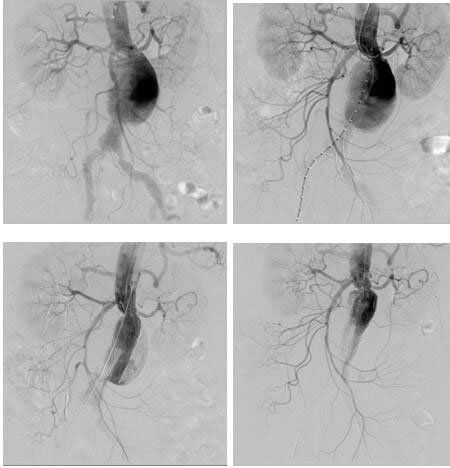 血管介入科完成我院首例腎下復(fù)雜型腹主動(dòng)脈瘤腔內(nèi)修復(fù) 發(fā)布時(shí)間:2018年1月10日 預(yù)覽:2007次 日前,血管介入科為一位患腎下復(fù)雜型腹主動(dòng)脈瘤(左腎動(dòng)脈距離瘤體僅4mm)74歲老年女性完成腎動(dòng)脈煙囪+腹主動(dòng)脈瘤覆膜支架腔內(nèi)隔絕術(shù),術(shù)后恢復(fù)良好。該患者基礎(chǔ)疾病多,已經(jīng)出現(xiàn)腹痛癥狀,腹主動(dòng)脈瘤瘤體隨時(shí)有破裂風(fēng)險(xiǎn),但左腎動(dòng)脈距離瘤體僅4mm,采取傳統(tǒng)開放手術(shù)(腹主動(dòng)脈瘤切除+Y型人工血管置換+左腎動(dòng)脈轉(zhuǎn)流術(shù))手術(shù)創(chuàng)傷大,手術(shù)風(fēng)險(xiǎn)高,經(jīng)血管外科治療團(tuán)隊(duì)反復(fù)研究病例,并在院領(lǐng)導(dǎo)支持下,決定采取腔內(nèi)治療:先經(jīng)肱動(dòng)脈穿刺置鞘于左腎動(dòng)脈留置導(dǎo)絲,再經(jīng)雙側(cè)股動(dòng)脈上導(dǎo)絲導(dǎo)管造影定位,在施放腹主動(dòng)脈主體支架前先經(jīng)左肱動(dòng)脈留置導(dǎo)絲導(dǎo)引下于左腎動(dòng)脈置入VIABAHN支架保證左腎動(dòng)脈供血,再釋放腹主動(dòng)脈主體支架,解決了左腎動(dòng)脈距離瘤體過近的問題。該例手術(shù)的完成,標(biāo)志著我院在腹主動(dòng)脈瘤的腔內(nèi)治療跨入省內(nèi)領(lǐng)先行列。