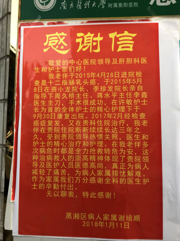 衡陽(yáng)市中心醫(yī)院骨科2018年1月28日錦旗