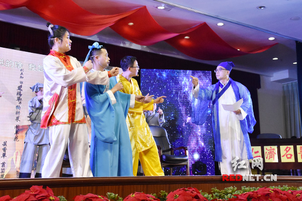 衡陽人氣本土笑星“夏利坨”(右一)出演小品《傳承》,引爆全場激情。