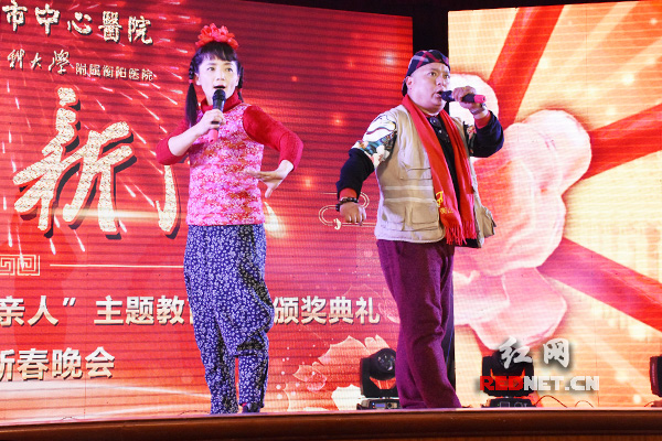 現(xiàn)場,一個個精彩紛呈的節(jié)目展現(xiàn)了醫(yī)務(wù)人員良好的精神風(fēng)貌。舞蹈《共圓中國夢》表達(dá)了對祖國的祝福,院領(lǐng)導(dǎo)集體表演的歌曲聯(lián)唱《走進(jìn)新時代》向現(xiàn)場醫(yī)護(hù)人員送出誠摯的祝福,歌舞串燒《相親相愛》、情景歌舞詩朗誦《永恒的誓言》催人淚下,感染了現(xiàn)場所有的觀眾,小品《歡樂健身房》爆笑不斷。晚會還邀請了衡陽人氣本土笑星“夏利坨”出演小品《傳承》,引爆全場激情,幽默逗趣的表演贏得觀眾的連連掌聲……