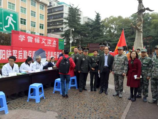 衡陽陸軍后勤保障旅衛(wèi)生營衡陽市中心醫(yī)院醫(yī)療保障隊開展學習雷鋒志愿服務活動 發(fā)布時間:2018年4月3日 預覽:2217次 通訊員夏利華報道:為大力弘揚雷鋒精神,貫徹落實習近平總書記在十九大報告中強調(diào),推進軍民融合發(fā)展,3月5日上午,衡陽市中心醫(yī)院醫(yī)療保障隊在雁峰公園舉行“學雷鋒義診活動”。在活動現(xiàn)場,衡陽市中心醫(yī)院黨委書記肖友儒、副院長劉志偉等院領(lǐng)導親臨現(xiàn)場查看指導,并與工作人員親切交流,了解開展宣傳活動的工作情況,對衡陽市中心醫(yī)院醫(yī)療保障隊開展學習雷鋒志愿服務活動表示贊賞。隨后,衡陽市中心醫(yī)院外科專家、內(nèi)科專家、婦科專家、兒科專家等醫(yī)務人員為每位居民測量血壓,解答居民咨詢的健康問題;同時發(fā)放健康教育宣傳單,幫助老年人要樹立積極樂觀的生活態(tài)度。 最后,衡陽陸軍預備后勤保障旅旅長兼衡陽警備區(qū)副司令王喜濱同志率工作組到我院預備役衛(wèi)生營醫(yī)療保障隊開展學習雷鋒志愿服務活動現(xiàn)場視察。衛(wèi)生營醫(yī)療保障隊指導員劉勇及醫(yī)療保障隊護士長周艷玉帶領(lǐng)預任官兵一行負責義診活動,我院副院長鄒建軍、工會主席周素英院陪同領(lǐng)導慰問工作人員。 通過此次學習雷鋒志愿服務活動,不僅提高居民的防病意識,健康意識,同時也展現(xiàn)了衡陽市中心醫(yī)院衛(wèi)生營醫(yī)療保障隊軍隊風采,抒發(fā)了軍愛民民擁軍的魚水之情,進一步增強軍民融合發(fā)展的使命感責任感!