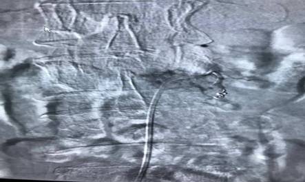 我院脊柱外科取得重大技術(shù)突破 發(fā)布時間:2018年4月28日 預(yù)覽:2529次 通訊員汪向東報道:近日,衡陽市中心醫(yī)院脊柱外科團隊迎難而上,為一例肝癌脊柱轉(zhuǎn)移患者施行腫瘤近端脊柱全切術(shù)、鈦網(wǎng)支撐、釘棒系統(tǒng)固定術(shù),手術(shù)非常成功,患者順利康復(fù)出院,此例標(biāo)志著中心醫(yī)院脊柱外科技術(shù)水平邁向新臺階。 患者劉先生,54歲,患肝癌16個月,因腰腿痛伴下肢麻木4月余入住中心醫(yī)院脊柱外科。腰椎MRI顯示腰2椎體轉(zhuǎn)移腫瘤、椎管占位、神經(jīng)根受壓,PECT顯示腫瘤單節(jié)段椎體侵犯、椎弓根骨折。手術(shù)指針明顯。為最大限度地挽救患者的神經(jīng)功能,改善其生活質(zhì)量,脊柱外科決定為其施行手術(shù)切除減壓。術(shù)前,蘇光輝、汪向東二位主任帶領(lǐng)科室技術(shù)骨干與腫瘤科尹忠文主任、血管外科涂宏主任、麻醉科段雪琴主任多次會商術(shù)前計劃,經(jīng)周密術(shù)前準(zhǔn)備后,術(shù)前當(dāng)天由血管外科先行瘤體血管栓塞術(shù),以減少術(shù)中出血,栓塞手術(shù)非常成功,手術(shù)按時進行。術(shù)中蘇光輝主任、汪向東副主任與肖華斌、陳威副主任醫(yī)師為其施行腫瘤椎體全切術(shù)。術(shù)中出血量在2000ml以內(nèi),出血量的控制超出手術(shù)團隊的預(yù)期。手術(shù)相當(dāng)順利,術(shù)后患者快速康復(fù)出院。 脊柱腫瘤手術(shù)治療一直是脊椎外科的熱點難點,也頗具爭議,因其手術(shù)創(chuàng)傷大、解剖結(jié)構(gòu)復(fù)雜,特別是難以控制的大出血常常導(dǎo)致手術(shù)失敗,甚至危及患者生命。此次脊柱外科與腫瘤內(nèi)科、血管外科、麻醉科緊密合作。采取術(shù)前栓塞,術(shù)中控制性降壓,為脊柱全切術(shù)創(chuàng)造了良好條件,也為多科合作聯(lián)合開展高難度手取得了成功經(jīng)驗。 腫瘤血管栓塞前造影圖片 腫瘤血管栓塞后造影圖片 術(shù)前腰椎MRI 圖片