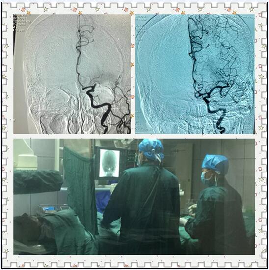 該患者因突發(fā)右側肢體無力80分鐘于5月11日8:25入神經內科,當時病人神志嗜睡,右側肢體肌肉無收縮,肌力0級。入院后,醫(yī)院立即啟動卒中綠色通道,23分鐘內完成了CT檢查,排除腦出血,病人處于時間窗內,完善相關檢查后,馬上以阿替普酶進行靜脈溶栓,但靜脈溶栓結束后,患者癥狀無明顯改善。經家屬同意于11:20進入導管室,馬上準備行腦動脈造影+血管內治療,術中發(fā)現患者血管路徑迂曲并多處串聯(lián)狹窄,立即改用動脈溶栓術。置鞘成功至病變血管開通共約80分鐘。術后1小時查,病人神志清楚,右側肢體可以抬離床面,并可抵抗部分阻力,肌力4級。