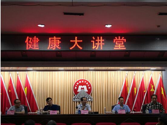 《仁濟(jì)健康大講堂》走進(jìn)常寧 發(fā)布時(shí)間:2018年6月14日 預(yù)覽:2701次 通訊員王旋報(bào)道:為促進(jìn)全民健康助力健康中國,6月13日下午15:00,衡陽市中心醫(yī)院主辦的《仁濟(jì)健康大講堂》科普活動(dòng)在常寧市松柏鎮(zhèn)水口山有色金屬集團(tuán)有限公司工人文化宮舉行。 衡陽市中心醫(yī)院副院長劉志偉,常寧市水口山職工醫(yī)院院長屈繼紅,副院長吳柱強(qiáng)與水口山有色金屬集團(tuán)有限公司200多名干部職工共同聆聽了一堂精彩的健康教育講座。本次講座先后由衡陽市中心醫(yī)院心內(nèi)科專家柏太柱、消化內(nèi)科專家桂若虎主講。專家們用通俗易懂的語言,結(jié)合日常生活實(shí)際,講解防病治病等相關(guān)知識(shí)。旨在提高人民群眾對相關(guān)疾病的理性認(rèn)識(shí),進(jìn)一步提高自我保健能力。