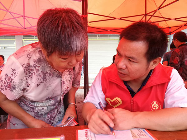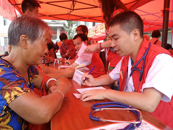 我院聯(lián)合淝田鎮(zhèn)舉行大型義診活動(dòng) 發(fā)布時(shí)間:2018年6月21日 預(yù)覽:2326次 2018年6月21日,為改善耒陽(yáng)市淝田鎮(zhèn)村民尤其是因病致貧、因病返貧老百姓的健康狀況,我院聯(lián)合耒陽(yáng)市淝田鎮(zhèn)黨委、人大、衛(wèi)生院開(kāi)展健康扶貧大型義診公益活動(dòng)。 在淝田鎮(zhèn)鎮(zhèn)政府大樓前廣場(chǎng),我院副院長(zhǎng)鄒建軍帶領(lǐng)心血管內(nèi)科、神經(jīng)內(nèi)科、呼吸內(nèi)科、骨科、耳鼻咽喉科等經(jīng)驗(yàn)豐富的醫(yī)療專(zhuān)家現(xiàn)場(chǎng)問(wèn)診、仔細(xì)檢查、健康宣教、開(kāi)具處方。據(jù)統(tǒng)計(jì),活動(dòng)現(xiàn)場(chǎng)我院免費(fèi)看病近200名老百姓,還免費(fèi)發(fā)放了價(jià)值3000多元的藥品。淝田鎮(zhèn)衛(wèi)生院也免費(fèi)為老百姓量血壓、測(cè)血脂和血糖等。 為籌備這次大型義診公益活動(dòng),我院駐村扶貧工作隊(duì)前期對(duì)淝田鎮(zhèn)百姓疾病譜做了大量調(diào)研工作,統(tǒng)計(jì)分析得知當(dāng)?shù)馗哐獕?、腦血管病等慢性病人較多,將相關(guān)情況向醫(yī)院匯報(bào)后,院領(lǐng)導(dǎo)針對(duì)性地派出對(duì)應(yīng)專(zhuān)科醫(yī)生對(duì)癥診斷和治療,提前通知淝田鎮(zhèn)老百姓來(lái)免費(fèi)咨詢和看病,得到了當(dāng)?shù)匕傩盏臒崃覛g迎。看完病后,70多歲的貧困戶蔣菊英奶奶激動(dòng)地說(shuō):“沒(méi)想到大醫(yī)院的專(zhuān)家會(huì)來(lái)我們這里給我們免費(fèi)看病,還發(fā)藥,真是太感謝你們啦”。 (郭偉)