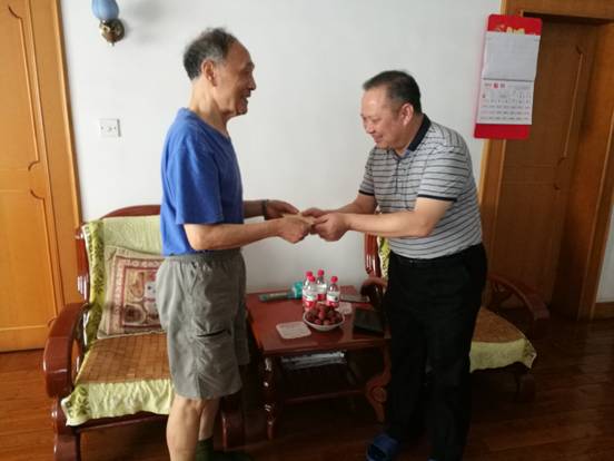 我院開展“七一”走訪慰問活動 發(fā)布時間:2018年7月3日 預覽:2480次 通訊員唐冠群報道:“七一”前夕,衡陽市中心醫(yī)院黨委組織開展走訪慰問活動。院領導帶領相關支部負責人深入老黨員、老干部、省勞模、困難黨員的家中,詳細詢問他們的生活和身體情況,送上慰問金和節(jié)日的問候,囑托他們保重身體,醫(yī)院將時刻關注大家,并竭盡所能為大家排憂解難。院領導們對他們?yōu)獒t(yī)院的奉獻與付出表示衷心的感謝,并殷切希望各位老黨員、老領導、老專家繼續(xù)關心關注醫(yī)院發(fā)展,為醫(yī)院更加美好的明天建言獻策、奉獻智慧!