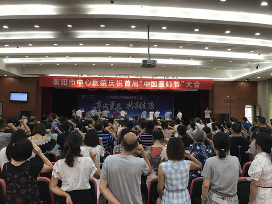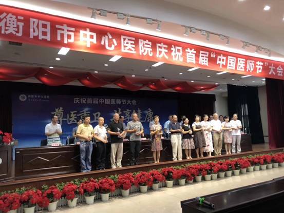 我院召開“首屆中國醫(yī)師節(jié)”慶祝大會(huì) 發(fā)布時(shí)間:2018年8月20日 預(yù)覽:2696次 通訊員陸昱霖報(bào)道:為慶祝首屆中國醫(yī)師節(jié),表彰從醫(yī)30周年醫(yī)師,慰問全院醫(yī)師,大力弘揚(yáng)“敬佑生命、救死扶傷、甘于奉獻(xiàn)、大愛無疆”的新時(shí)期職業(yè)精神,衡陽市中心醫(yī)院于8月17日下午在21樓大會(huì)議室召開“慶祝首屆中國醫(yī)師節(jié)”大會(huì)。院領(lǐng)導(dǎo)、中層干部、醫(yī)師共計(jì)300余人參加了大會(huì),市衛(wèi)計(jì)委副主任鄧玉生出席會(huì)議并講話,院長申惠龍為大會(huì)致辭,院黨委書記肖友儒主持大會(huì)。 市衛(wèi)計(jì)委副主任鄧玉生,談到了自己參加此次大會(huì)的幾點(diǎn)感想:一、醫(yī)師,作為人民健康的“守護(hù)人”,是推動(dòng)健康中國的主力軍,他們是值得全社會(huì)尊重的群體。二、隨著人們健康意識(shí)不斷加強(qiáng),人民群眾在就醫(yī)過程中對(duì)于醫(yī)生期望過高,導(dǎo)致醫(yī)師們常年處在高強(qiáng)度工作中,作為上級(jí)部門管理者應(yīng)該理解、關(guān)懷醫(yī)師,為醫(yī)師做好后盾和服務(wù)工作。三、衡陽市中心醫(yī)院有優(yōu)秀人才隊(duì)伍,中國好醫(yī)生柏太柱、湖南好醫(yī)生廖金文、衡陽好醫(yī)生劉軍,構(gòu)建了一個(gè)“好醫(yī)生”矩陣,為全市兄弟醫(yī)院起到了良好的示范帶頭作用,同時(shí)也希望中心醫(yī)院的醫(yī)師們繼續(xù)在工作中,做到“三心兩意”——仁愛之心、敬業(yè)之心、感恩之心、責(zé)任意識(shí)、奉獻(xiàn)意識(shí)。 院長申惠龍向全院醫(yī)師同志致以節(jié)日的問候,并在講話中提到,“中國醫(yī)師節(jié)”的設(shè)立,體現(xiàn)了黨中央對(duì)衛(wèi)生健康工作者的關(guān)懷和肯定,同時(shí)也是對(duì)醫(yī)師奮發(fā)向上、嚴(yán)以自律的激勵(lì)和鞭策。衡陽市中心醫(yī)院是一家有著光榮歷史的老院、名院,醫(yī)院的發(fā)展離不開一代代“仁濟(jì)”人的薪火相傳,希望醫(yī)院全體醫(yī)師在攀登醫(yī)學(xué)高峰、攻克疑難雜癥方面敢為人先,繼續(xù)取得突破。新班子上任以來,全院齊心聚力,在人才引進(jìn)、培養(yǎng),學(xué)科建設(shè),就醫(yī)環(huán)境等方面都取得了長足地進(jìn)步,在提高醫(yī)師經(jīng)濟(jì)待遇的同時(shí)積極努力為廣大醫(yī)師構(gòu)筑一個(gè)有尊嚴(yán)、有發(fā)展、有幸福感的職業(yè)環(huán)境。并寄語全體醫(yī)師,德才兼?zhèn)涞暮冕t(yī)師是群眾所需、社會(huì)所盼,醫(yī)師們?cè)诠ぷ髦幸龅街氐隆⒕g(shù)、勤研。 最后院黨委書記肖友儒感謝了全院醫(yī)師的付出和奉獻(xiàn),并勉勵(lì)全院醫(yī)生們踐行“敬佑生命、救死扶傷、甘于奉獻(xiàn),大愛無疆”十六字崇高精神在以后的工作中常懷感恩之心、敬業(yè)之心、惻隱之心、自律之心。 此次大會(huì)上,副院長劉小平宣讀了衡陽市中心醫(yī)院從醫(yī)30年以上專家名單,全體院領(lǐng)導(dǎo)為從醫(yī)30年以上專家頒發(fā)獎(jiǎng)杯。院長申惠龍帶領(lǐng)全體人員重溫醫(yī)生誓言,“衡陽好醫(yī)生”劉軍作為醫(yī)師代表也上臺(tái)做了發(fā)言。