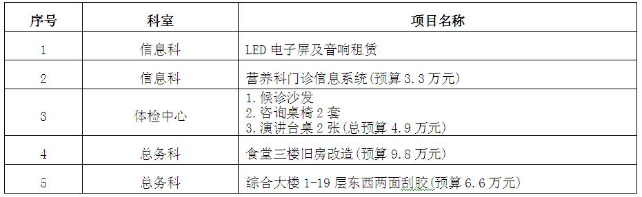 因醫(yī)院發(fā)展的需要,我院擬于近期對(duì)一系列項(xiàng)目進(jìn)行院內(nèi)公開(kāi)招標(biāo)采購(gòu),歡迎具備條件的公司報(bào)名參加。